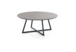 Strak, luxueus en hierdoor een modieus sieraad in een moderne woonkamer. Het strakke onderstel in zwart in combinatie met het scherp verjongde Fenix blad geven deze tafel een design-uitstraling. Zoals getoond: salontafel met zwarte metalen frame en blad in fenix piombo doha. Afmetingen: H34 x ø80 cm.