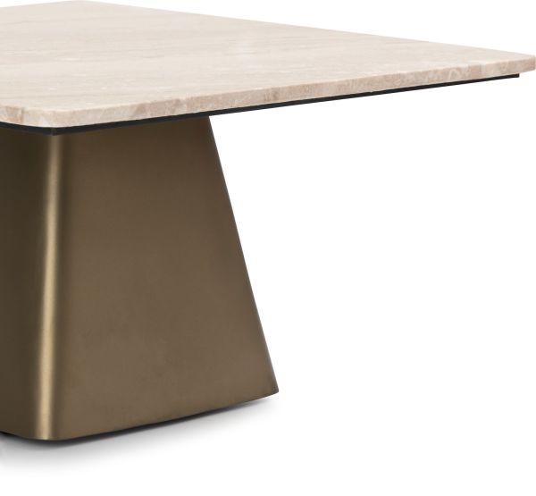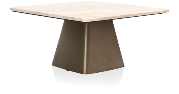 Serie Issy bestaat uit drie prachtige bijzettafels die je los kunt neerzetten of perfect met elkaar kunt combineren als set. Deze tafeltjes van COCOmaison stralen luxe en een klassieke elegantie uit dankzij hun goudkleurige metalen voet en het schitterende crèmekleurige travertijnen blad. Dit is de laagste en breedste variant met een bladafmeting van 63 x 63 cm en een hoogte van 33 cm. Issy is vervaardigd uit 40% metaal en 60% marmer. Dit meubel is voorzien van een blad van natuursteen. Natuursteen is een natuurlijk materiaal, wat betekent dat elke tafel uniek is. Kleine variaties in kleur, structuur en patroon maken uw meubelstuk exclusief en authentiek.