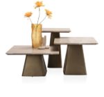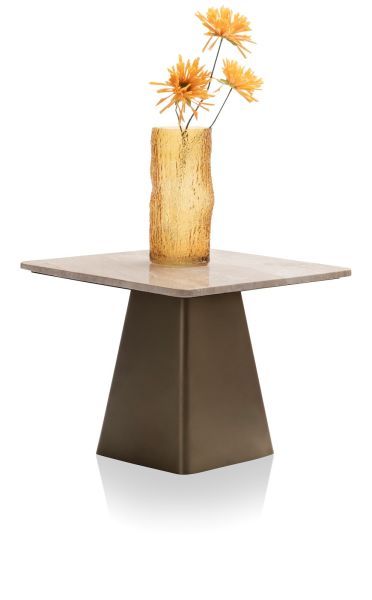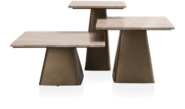 Serie Issy bestaat uit drie prachtige bijzettafels die je los kunt neerzetten of perfect met elkaar kunt combineren als set. Deze tafeltjes van COCOmaison stralen luxe en een klassieke elegantie uit dankzij hun goudkleurige metalen voet en het schitterende crèmekleurige travertijnen blad. Dit is de middelgrote variant met een bladafmeting van 55 x 55 cm en een hoogte van 44 cm. Issy is vervaardigd uit 40% metaal en 60% marmer. Dit meubel is voorzien van een blad van natuursteen. Natuursteen is een natuurlijk materiaal, wat betekent dat elke tafel uniek is. Kleine variaties in kleur, structuur en patroon maken uw meubelstuk exclusief en authentiek.