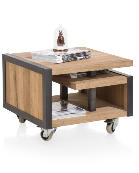 Zoek je een moderne stoere bijzettafel? Dan is deze hoektafel uit de Metalo collectie van Henders & Hazel een aanrader. De metalen accenten en het eigentijdse design geven deze bijzettafel een trendy uiterlijk. Dankzij de wieltjes is de tafel eenvoudig te verrijden.
