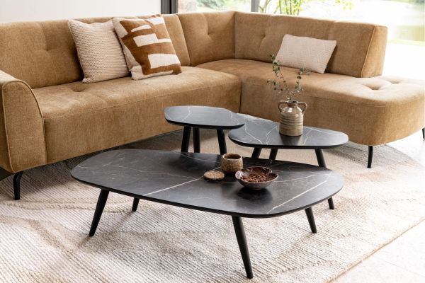 Mix- en match zoveel je wilt, met de leuke Palazio bijzettafels. Je kunt kiezen uit 3 formaten en 2 kleuren die je naar eigen wens kunt combineren tot een trendy set. Alle tafels hebben een blad van Primo Laminato, een sterk kunststof materiaal dat bijna niet van echt hout of marmer te onderscheiden is. De metalen pootjes zijn slank en donker en geven de bijzettafels een geraffineerde moderne uistraling. Deze bijzettafel heeft een chique onyx marble look en een afmeting van 40x40cm.