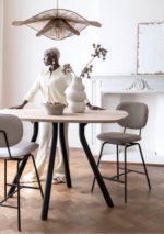 Tijd voor gezelligheid in huis? Met deze ronde bartafel ARVADA creëer je direct een leuke setting die uitnodigt tot lekker lang tafelen. De bartafel heeft een onyx blad van massief eikenhout met een doorsnee van 140 cm. Het onderstel bestaat uit een centrale zwart metalen poot. Ga je liever voor een maatje kleiner? ARVADA is ook verkrijgbaar met een blad van 125 cm doorsnee. Welk formaat je ook kiest, het wordt hoe dan ook genieten geblazen aan deze prachtige ronde bartafel!