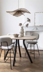Een heerlijk diner, een snel ontbijt, een uitgebreide lunch of een avondje borrelen met vrienden; het wordt hoe dan ook genieten geblazen aan deze prachtige ellips vormige eetkamertafel ARVADA met massief eikenhouten blad en ronde zwart metalen poten. Het blad van 250 x 110 cm is verkrijgbaar in onyx en naturelkleur. Ga je voor de variant met de centrale poot of heb je liever poten aan de kopse zijden? Aan jou de keus!