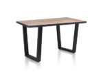 Deze moderne bartafel uit de Avalox-collectie is ideaal voor een gezellige maaltijd. Het tafelblad is vervaardigd uit Primo Laminato, een duurzaam en onderhoudsvriendelijk materiaal dat de uitstraling van echt hout heeft, en is verkrijgbaar in twee warme tinten: driftwood (afgebeeld) en oak natural vintage. Het onderstel is van zwart metaal, met drie opties om uit te kiezen: stoere V-poten (zoals hier), vier rechte poten voor een strakke uitstraling, of een centrale poot (zoals op de foto) voor een subtiele, moderne touch. De bartafel is verkrijgbaar in vier formaten, en deze uitvoering heeft een afmeting van 170 x 98 cm.