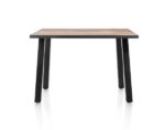 Deze moderne bartafel uit de Avalox-collectie is perfect voor een gezellige maaltijd. Het tafelblad is gemaakt van Primo Laminato, een sterk en onderhoudsvriendelijk materiaal met de uitstraling van echt hout, en is verkrijgbaar in twee warme houttinten: driftwood (foto) en oak natural vintage. Het onderstel is van zwart metaal en je hebt de keuze uit drie varianten: stoere V-poten, vier rechte poten voor een strakke look (afgebeeld), of een centrale poot (zoals op de foto) voor een eigentijdse, verfijnde uitstraling. De bartafel is beschikbaar in vier formaten, en deze uitvoering heeft een afmeting van 170 x 98 cm.