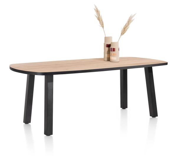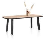 Deze ovale bartafel uit de Avalox-collectie is een stijlvolle blikvanger in elk interieur. De afgeronde lijnen zorgen voor een moderne, organische look. Het tafelblad is gemaakt van Primo Laminato – een sterk en onderhoudsvriendelijk materiaal met de uitstraling van massief hout – en verkrijgbaar in twee elegante kleuren: driftwood en oak natural vintage en (zoals hier). Het zwarte metalen onderstel is beschikbaar in twee uitvoeringen: met stoere V-poten of deze met vier losse poten. Dit model meet 240 x 110 cm, maar is ook in andere afmetingen verkrijgbaar.