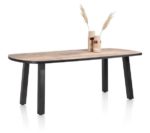 Deze ovale bartafel uit de Avalox-collectie is een stijlvolle blikvanger in elk interieur. De afgeronde lijnen zorgen voor een moderne, organische look. Het tafelblad is gemaakt van Primo Laminato – een sterk en onderhoudsvriendelijk materiaal met de uitstraling van massief hout – en verkrijgbaar in twee elegante kleuren: driftwood (zoals afgebeeld) en oak natural vintage. Het zwarte metalen onderstel is beschikbaar in twee uitvoeringen: met stoere V-poten of, zoals deze, met vier losse poten. Dit model meet 240 x 110 cm, maar is ook in andere afmetingen verkrijgbaar.