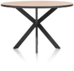 Deze bijna ronde bartafel uit de collectie Avalox heeft een tafelblad van 150×120 cm en is gemaakt van Primo Laminato, een stevig materiaal met een mooie houtlook, verkrijgbaar in 2 kleuren: driftwood en oak natural vintage (zoals hier afgebeeld). Het centrale metalen onderstel in zwart is heel bijzonder, maar als je liever vier aparte poten hebt, is dat ook mogelijk.