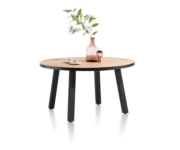 Met haar afmetingen van 130×110 cm is dit het meest compacte model binnen de Avalox-collectie. De bijna ronde vorm geeft de tafel een eigentijdse, speelse look. Het blad is gemaakt van Primo Laminato – een sterk, onderhoudsvriendelijk materiaal met de uitstraling van echt hout. Deze uitvoering is afgewerkt in de sfeervolle houttint oak natural vintage. Dit is de versie met vier poten, maar er is ook een variant met een centraal zwart metalen onderstel.