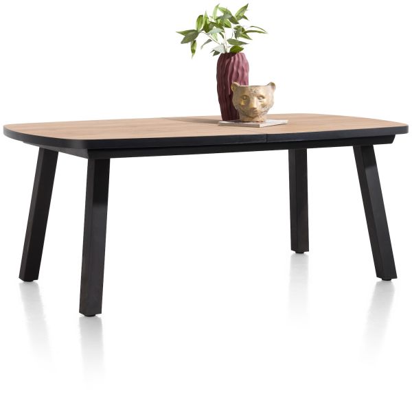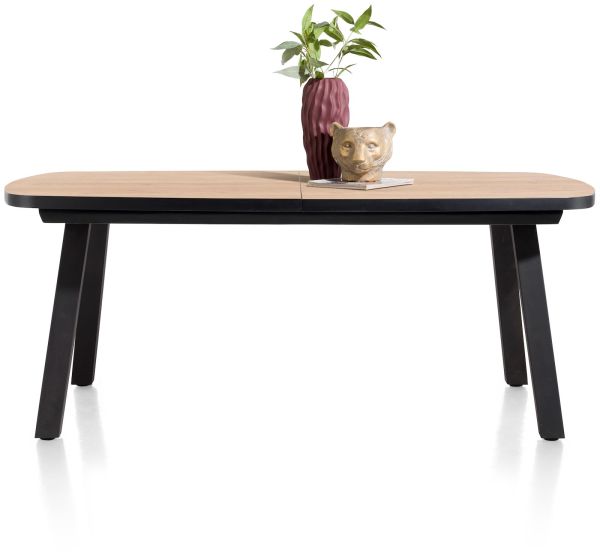 Deze ovale bartafel uit de Avalox-collectie combineert stijl met functionaliteit. Ideaal wanneer je extra gasten ontvangt, want het blad van 190 x 110 cm is in een handomdraai met 60 cm te verlengen. Het tafelblad is gemaakt van Primo Laminato – een onderhoudsvriendelijk materiaal met de uitstraling van echt hout – en is verkrijgbaar in twee sfeervolle kleuren: driftwood en oak natural vintage (foto). Het zwarte metalen onderstel is beschikbaar in twee varianten: vier losse poten (zoals bij dit model) of een robuuste V-poot.