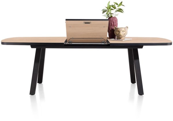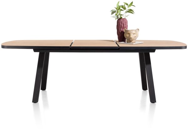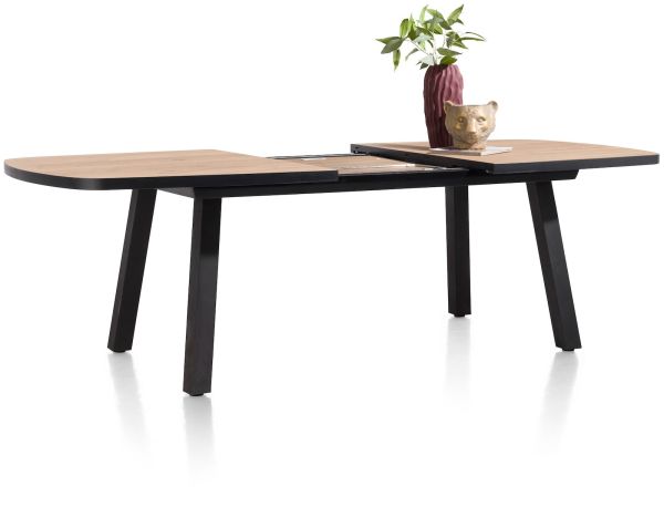 Deze uitschuifbare ovale eettafel uit de Bahia-collectie combineert moeiteloos stijl en functionaliteit. Met een standaardafmeting van 190×110 cm biedt ze comfortabel plaats aan meerdere personen. Heb je extra ruimte nodig? Dan verleng je het tafelblad in een handomdraai met 60 cm dankzij het slimme uitschuifsysteem. De Bahia-collectie biedt volop variatie in vormen en formaten, zodat je een tafel samenstelt die perfect bij jouw wensen past. Kies uit twee warme kleurtinten – oak natural vintage of driftwood – en maak je tafel compleet met een zwart metalen onderstel naar keuze: een centrale poot, vier rechte poten of uitgesproken V-poten.