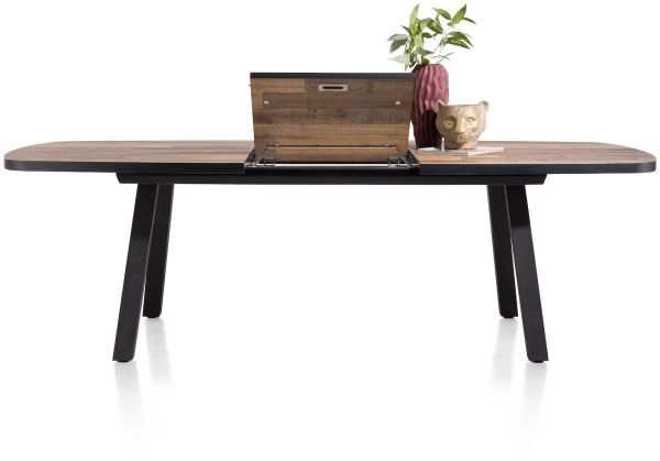 Deze uitschuifbare ovale eettafel uit de Bahia-collectie verenigt stijl en praktisch gemak in één elegant ontwerp. Met een afmeting van 190×110 cm biedt ze ruim voldoende plek, en wanneer je extra ruimte nodig hebt, verleng je het blad moeiteloos met 60 cm dankzij het gebruiksvriendelijke uitschuifsysteem. Binnen de Bahia-collectie heb je keuze uit diverse vormen en afmetingen, zodat je een tafel kunt samenstellen die naadloos aansluit op jouw interieurwensen. Kies uit twee warme houttinten – oak natural vintage of driftwood – en combineer met een zwart metalen onderstel naar keuze: een centrale poot, vier rechte poten of karaktervolle V-poten.