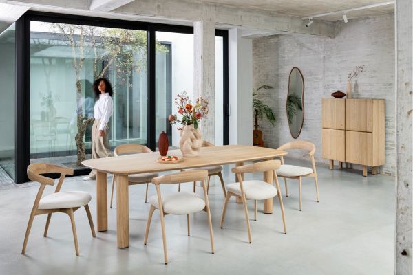 De Scandinavische woonstijl is populairder dan ooit, en dat komt perfect tot uiting in de Azulo-collectie van Henders & Hazel. Deze lijn combineert alle kenmerkende elementen van de stijl, met tafels die dezelfde strakke en minimalistische uitstraling hebben als de opbergmeubels. Het massief eikenhouten tafelblad is een echte blikvanger dankzij zijn unieke kiezelvorm (pebblestone). De eettafels zijn verkrijgbaar in vier formaten, waarbij de poten bij de drie grootste modellen op twee manieren kunnen worden geplaatst: aan de uiteinden of iets meer naar het midden. Dit model heeft een blad van 270 cm lang, 120 cm breed en 77 cm hoog.