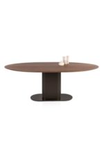 Met eetkamertafel BRIANZA haal je een stijlvolle blikvanger in huis. Het ovalen blad in luxe walnootfineer straalt warmte uit en is afgewerkt met een schuine rand, wat de tafel optisch lichter maakt. De ellipsvormige metalen kolompoot in de kleur steelbrown zorgt voor een modern accent en maximale stabiliteit, dankzij de verzwaarde kern. Het samenspel van ronde vormen en subtiele details geeft BRIANZA een tijdloze look. Wil je een lichtere uitstraling? Kies dan voor de variant met een poot in crèmekleur. Combineer deze tafel met de andere items uit de BRIANZA collectie en creëer een elegant geheel in je interieur.