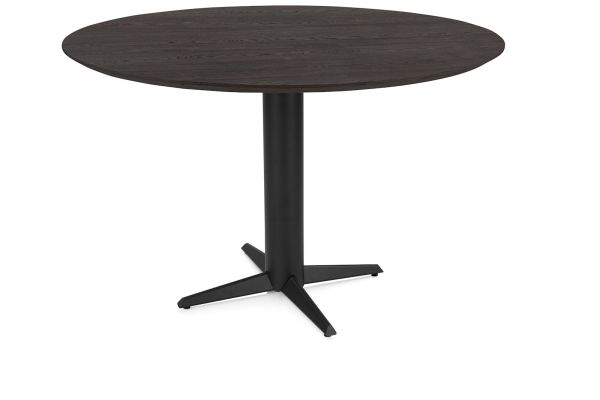 Caletta, Bartafel rond 150 cm. – eiken blad – centrale teenpoot rough off black