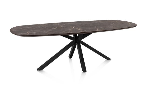 Henders & Hazel Caletta, Eetkamertafel ovaal 240 x 105 cm. - hpl primo laminato blad - centrale kruispoot rough off black