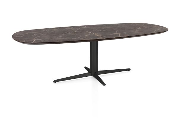 Caletta, Eetkamertafel ovaal 240 x 105 cm. - hpl primo laminato blad - centrale teenpoot rough off black