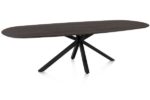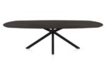 Caletta, Eetkamertafel ovaal 270 x 110 cm. – eiken blad – centrale kruispoot rough off black