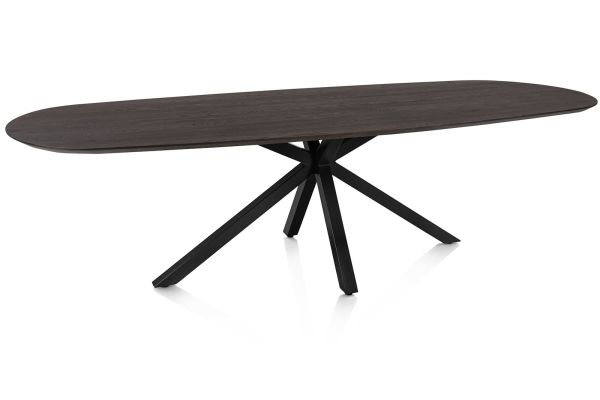 Caletta, Eetkamertafel ovaal 270 x 110 cm. - eiken blad - centrale kruispoot rough off black