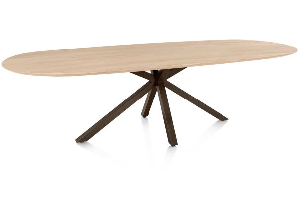 Caletta, Eetkamertafel ovaal 270 x 110 cm. - eiken blad - centrale kruispoot steelbrown