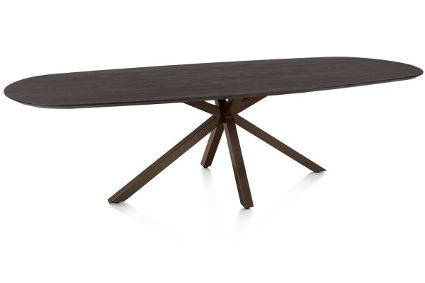 Caletta, Eetkamertafel ovaal 270 x 110 cm. - eiken blad - centrale kruispoot steelbrown