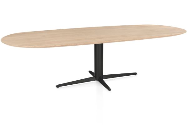 Caletta, Eetkamertafel ovaal 270 x 110 cm. - eiken blad - centrale teenpoot rough off black