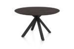 Caletta, Eetkamertafel rond 120 cm. – eiken blad – centrale kruispoot rough off black