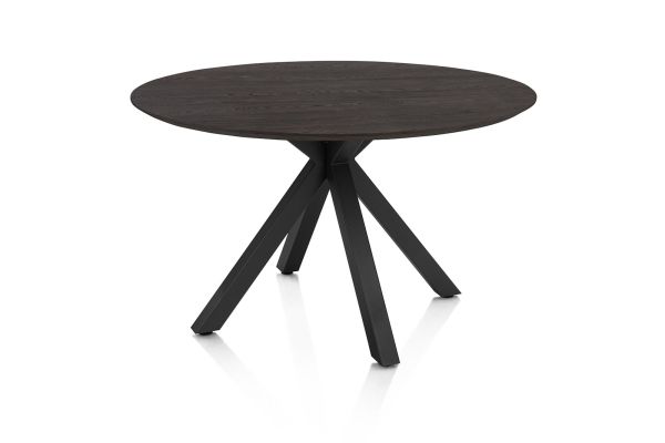 Caletta, Eetkamertafel rond 120 cm. - eiken blad - centrale kruispoot rough off black