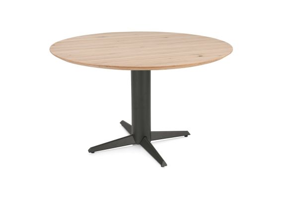 Caletta, Eetkamertafel rond 120 cm. – eiken blad – centrale teenpoot graphiet