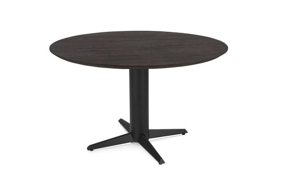 Caletta, Eetkamertafel rond 120 cm. – eiken blad – centrale teenpoot rough off black