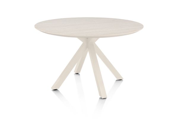 Caletta, Eetkamertafel rond 120 cm. - hpl primo laminato blad - centrale kruispoot crème