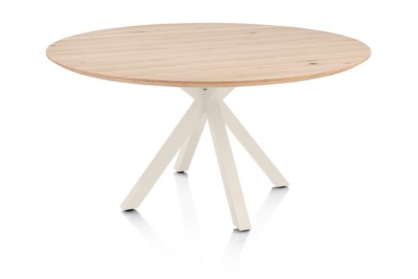Caletta, eetkamertafel rond 150 cm. – eiken blad – centrale kruispoot crème