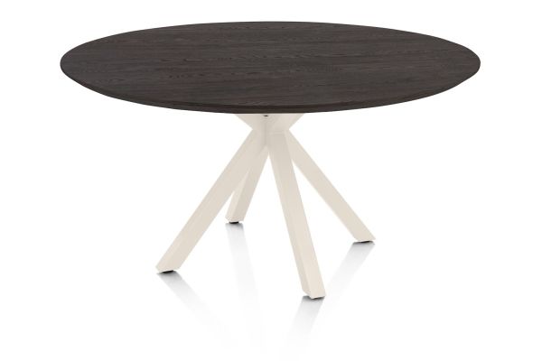 Caletta, eetkamertafel rond 150 cm. – eiken blad – centrale kruispoot crème