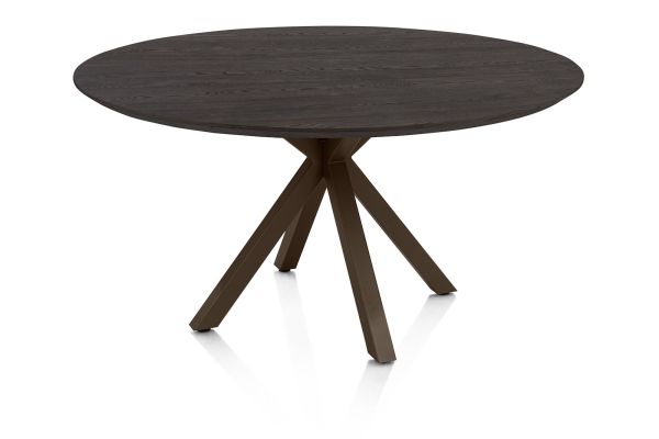 Henders & Hazel Caletta, Eetkamertafel rond 150 cm. - eiken blad - centrale kruispoot steelbrown
