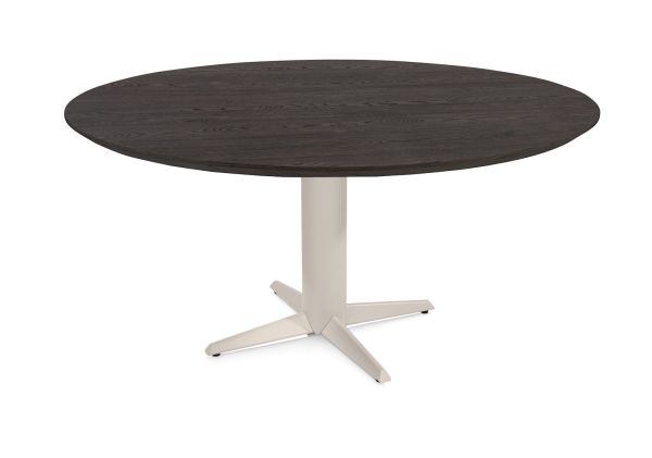 Caletta, Eetkamertafel rond 150 cm. – eiken blad – centrale teenpoot crème