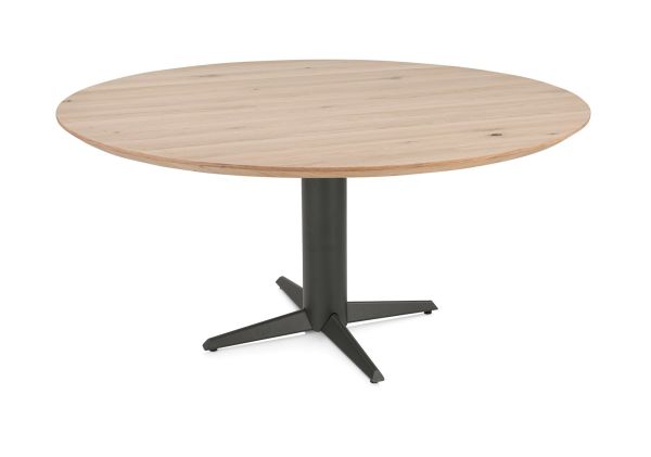 Caletta, Eetkamertafel rond 150 cm. – eiken blad – centrale teenpoot graphiet
