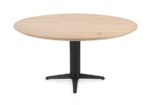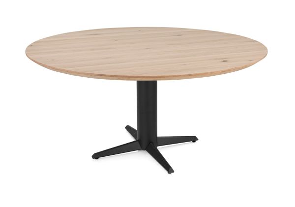 Caletta, Eetkamertafel rond 150 cm. – eiken blad – centrale teenpoot rough off black