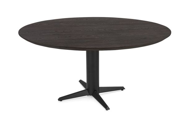 Caletta, Eetkamertafel rond 150 cm. - eiken blad - centrale teenpoot rough off black