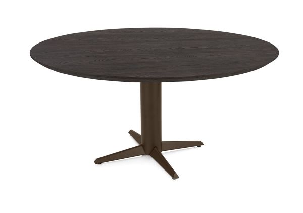 Caletta, Eetkamertafel rond 150 cm. – eiken blad – centrale teenpoot steelbrown