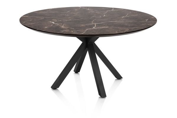 Henders & Hazel Caletta, Eetkamertafel rond 150 cm. - hpl primo laminato blad - centrale kruispoot rough off black