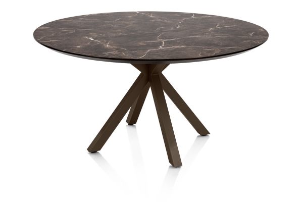Henders & Hazel Caletta, Eetkamertafel rond 150 cm. - hpl primo laminato blad - centrale kruispoot steelbrown