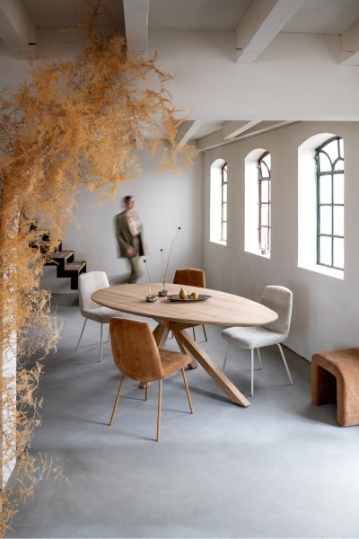 Eetkamertafel COSENZA is een prachtige eetkamertafel met een natuurlijke uitstraling. Hij is volledig uitgevoerd in massief eikenhout met zichtbare houtnerven en knoesten. Je kunt kiezen uit 2 kleuren: naturel of onyx. COSENZA heeft een ei-vorm blad van 210 x 120 cm en is ook verkrijgbaar in andere afmetingen. Het massieve onderstel heeft de vorm van een asymetrische kruispoot en is er in 2 hoogtes. Eetkamertafel COSENZA shop je ook als bartafel! Zie jij hem al staan in jouw eetkamer?