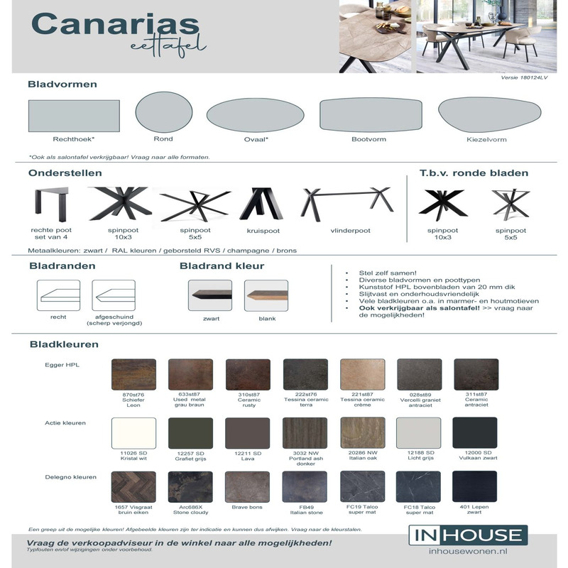 Designtafel Canarias met RVS poot en voorzien van een gebruiksvriendelijk en slijtvast HPL bovenblad. Deze tafel is ook verkrijgbaar als salontafel en leverbaar in diverse kleuren in onze woonwinkel. De tafel is op maat samen te stellen door de combinatiemogelijkheid van diverse bovenbladen en poten.