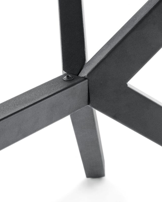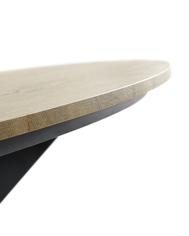 Deze ovale eettafel Larente is voorzien van een zwart metalen poot. De tafel wordt ongemonteerd geleverd, uiteraard met een duidelijk montagehandleiding.
