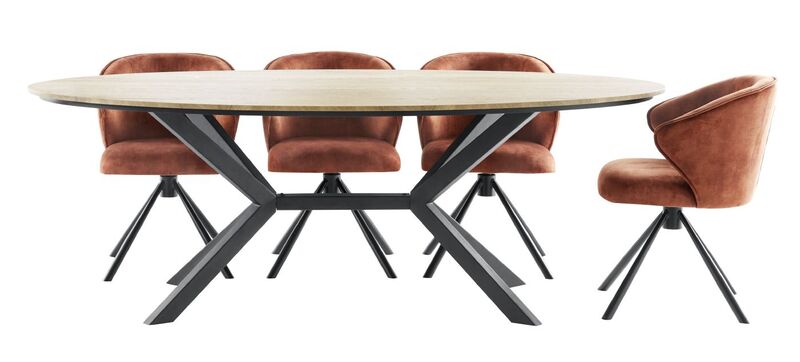 Eettafel Larente ovaal bruin/metaal 220x120cm