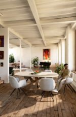 Himalaya, Eetkamertafel 210 x 120 cm. – houten poten / keramiek blad