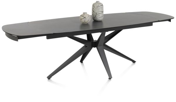 De tafelserie Lazio heeft tafelbladen van keramiek op glas en is verkrijgbaar in 3 formaten uitschuiftafel en als salontafel, zodat je alle tafels in huis mooi met elkaar kunt matchen. De tafels zijn kras-, vlek- en hittebestendig en hebben een antraciete kleur die de industriële look van de kast versterkt. Door het handige uitschuifsysteem van deze uitschuiftafel maak je het tafelblad aan twee kanten groter. Deze tafel heeft een tafelblad met een formaat van 140x100cm en is dus ideaal voor kleinere ruimtes. Je tovert de tafel gemakkelijk om tot een tafel van 210cm, die perfect geschikt is voor 3 plaatsen naast elkaar! Handig, toch?
