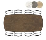 De woontrend van nu: ovale eetkamertafels! Dit stijlvolle exemplaar heeft een afmeting van 240 x 110 cm, en biedt ruimte voor 8 stoelen. Deze eetkamertafel MASURA pronkt op een centrale poot wat ideaal is qua beenruimte. Het tafelblad is gemaakt van hoogwaardig HPL en is naast deze kleur verkrijgbaar in nog 3 andere kleuren.