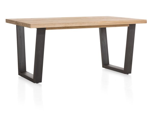 Een houten tafelblad met boomschorsrand, metalen tafelpoten in V-vorm. Deze eetkamertafel uit de Metalox collectie van Henders & Hazel is een mooi voorbeeld van eigentijds design. De tafel is 170 x 100 cm en een aanwinst voor het interieur.
