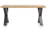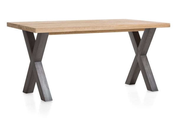 Deze eigentijdse eetkamertafel uit de Metalox collectie van Henders & Hazel heeft een strak vormgegeven houten tafelblad waaronder stoere metalen tafelpoten in X-vorm staan. Een opvallende verschijning in het interieur.